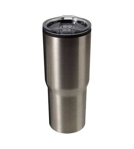 Get 12 of these 30 oz Stainless Steel Travel Tumbler with a stainless steel outer shell and black polypropylene (pp)inner lining.